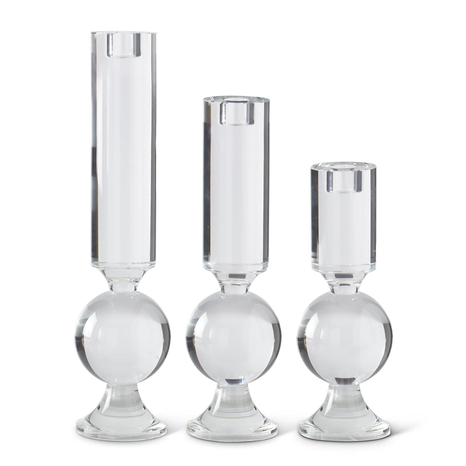 Clear Crystal Glass Single Ball Taper Candleholder