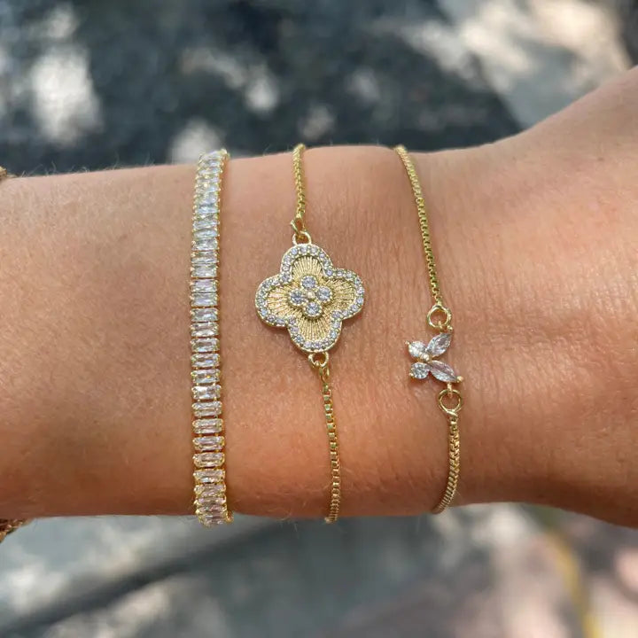Gold Baguette Crystal Slider Bracelet Waterproof