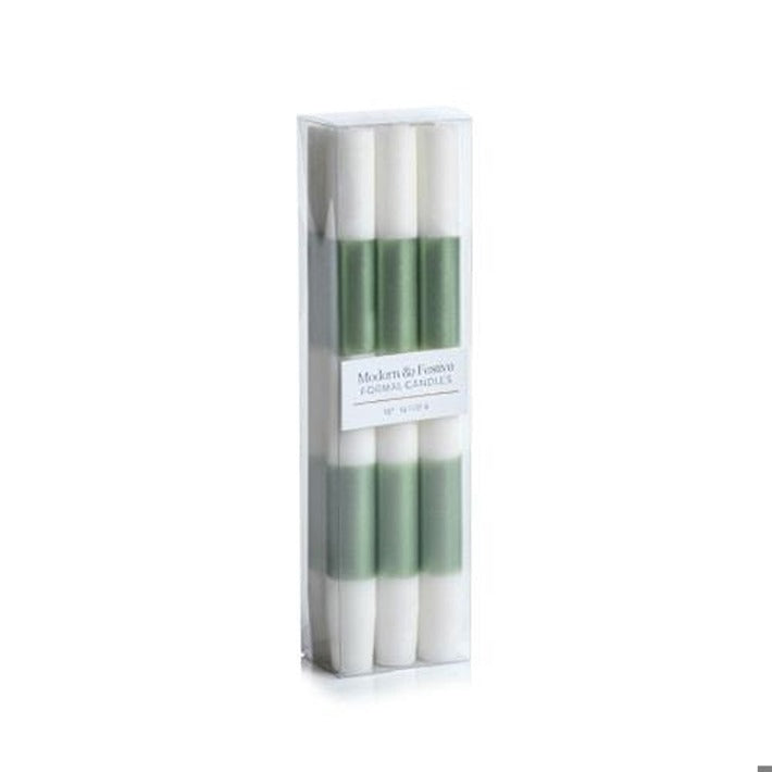 Modern & Festive Green and white Formal Candles/ Set of 6